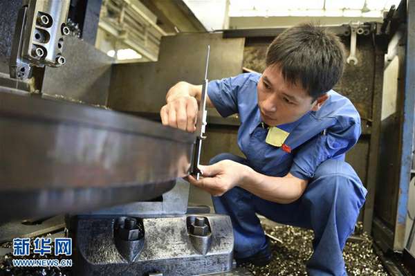 9月19日,沈阳鼓风机集团转子车间工人马长好在工作中。 新华社发(龙雷 摄)