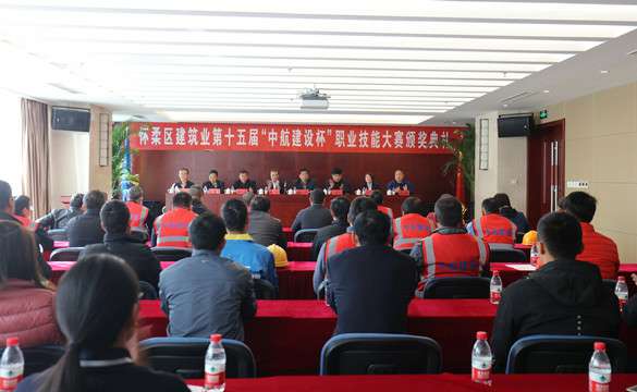 10月25日上午,怀柔区建筑业第十五届“中航建设杯”职业技能大赛颁奖典礼在新爱体育官方网站-新爱体育(中国)总部三层多功能厅举行。怀柔区建筑业协会会长、大赛组委会副主任王贵军,区总工会副主席解忠明,集团公司总工程师、大赛组委会副主任陈劲一同参加,同时到场的还有各参赛单位代表及获奖选手共计50余人。