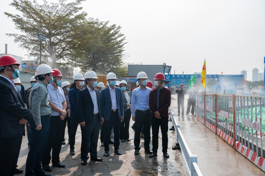 赵院士一行到达施工现场后,详细听取了项目总指挥徐刚对工程总体部署和安全、质量、进度管理方面工作的汇报,着重关注了BIM+5D智慧工地信息化管理平台在项目上的应用情况。