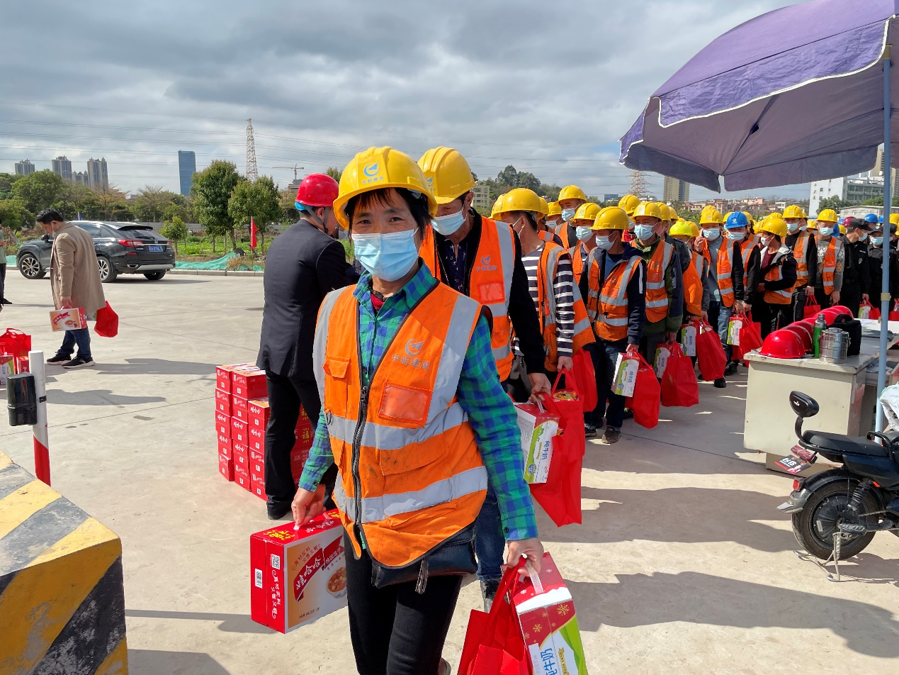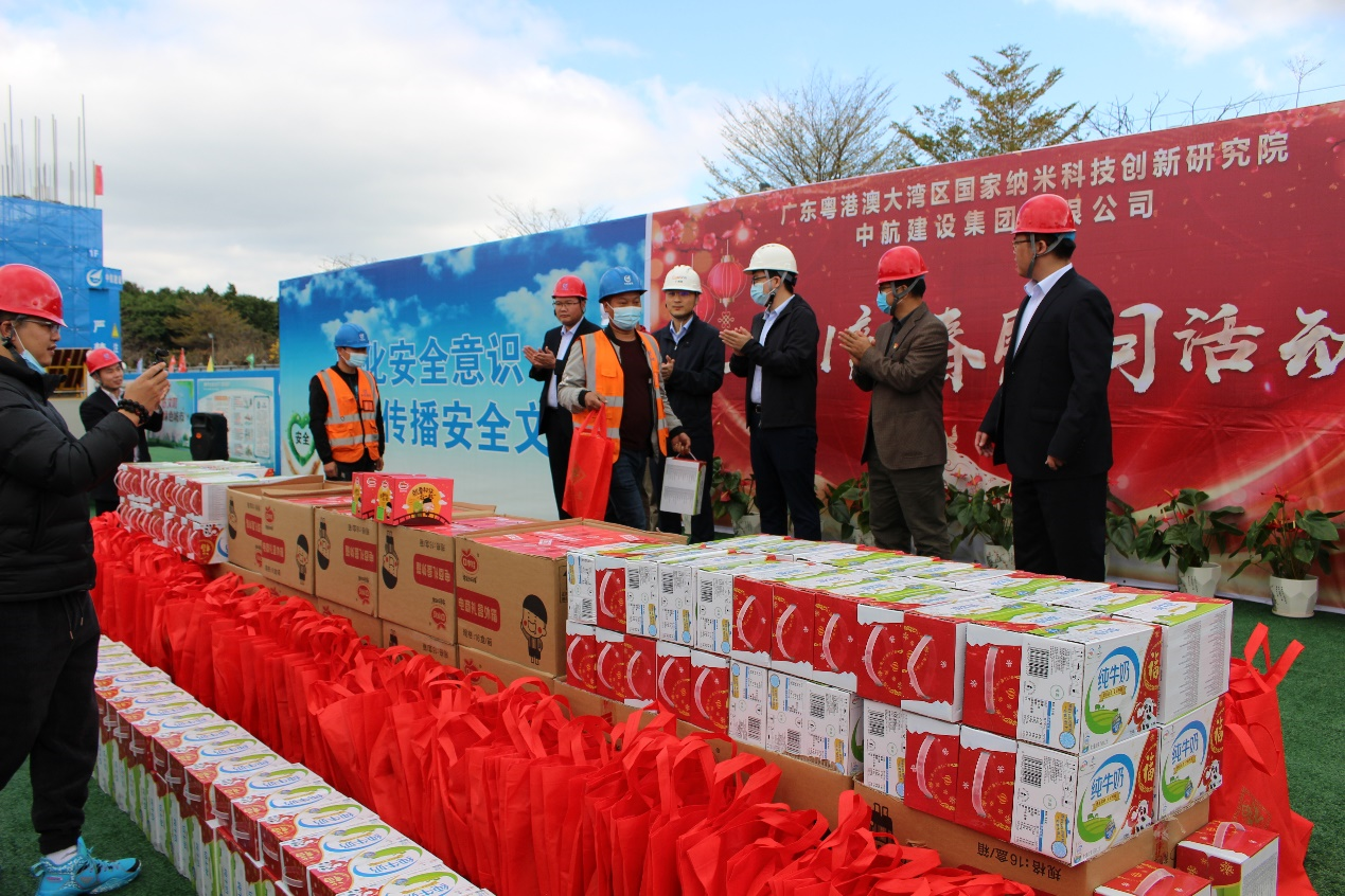 大年三十闹新春,生产一线迎新年。为响应地方政府“留穗过年”的号召,2021年2月11日,新爱体育官方网站-新爱体育(中国)南方工程有限公司联合广州市黄埔区鱼珠街道办事处、广州纳米产业投资有限公司、广州珠江工程建设监理有限公司,组织开展“2021新春慰问活动”。