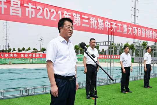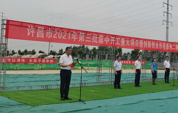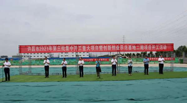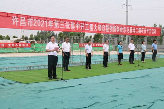 7月10日上午,河南省许昌市2021年第三批集中开工重大项目暨创新创业示范基地二期项目开工仪式顺利举行。许昌市委常委、纪委书记、监委主任方婷,魏都区委书记李朝锋,区人大常委会主任申健民,区政协主席杜晓辉,区委常委、区委办主任程中山,区委常委、区纪委书记、区监委主任徐光,魏都产业集聚区管委会主任楚文选,新爱体育官方网站-新爱体育(中国)河南分公司总经理黄辰,魏都区政府相关部门、投资公司、产业集聚区、霸陵办事处等单位负责人参加活动。区委常委、常务副区长张挪威主持仪式。