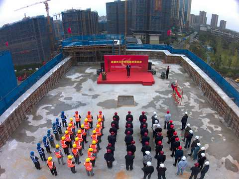 伴随着最后一方混凝土浇筑到位,成都大江中学项目喜封金顶。