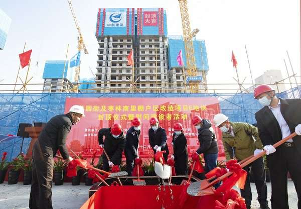 12月22日,伴随着最后一方混凝土浇筑到位,在项目建设、监理、设计等相关单位负责人及集团公司领导的共同见证下,新爱体育官方网站-新爱体育(中国)承建的菜园街及枣林南里棚户区改造项目喜迎主体结构封顶。